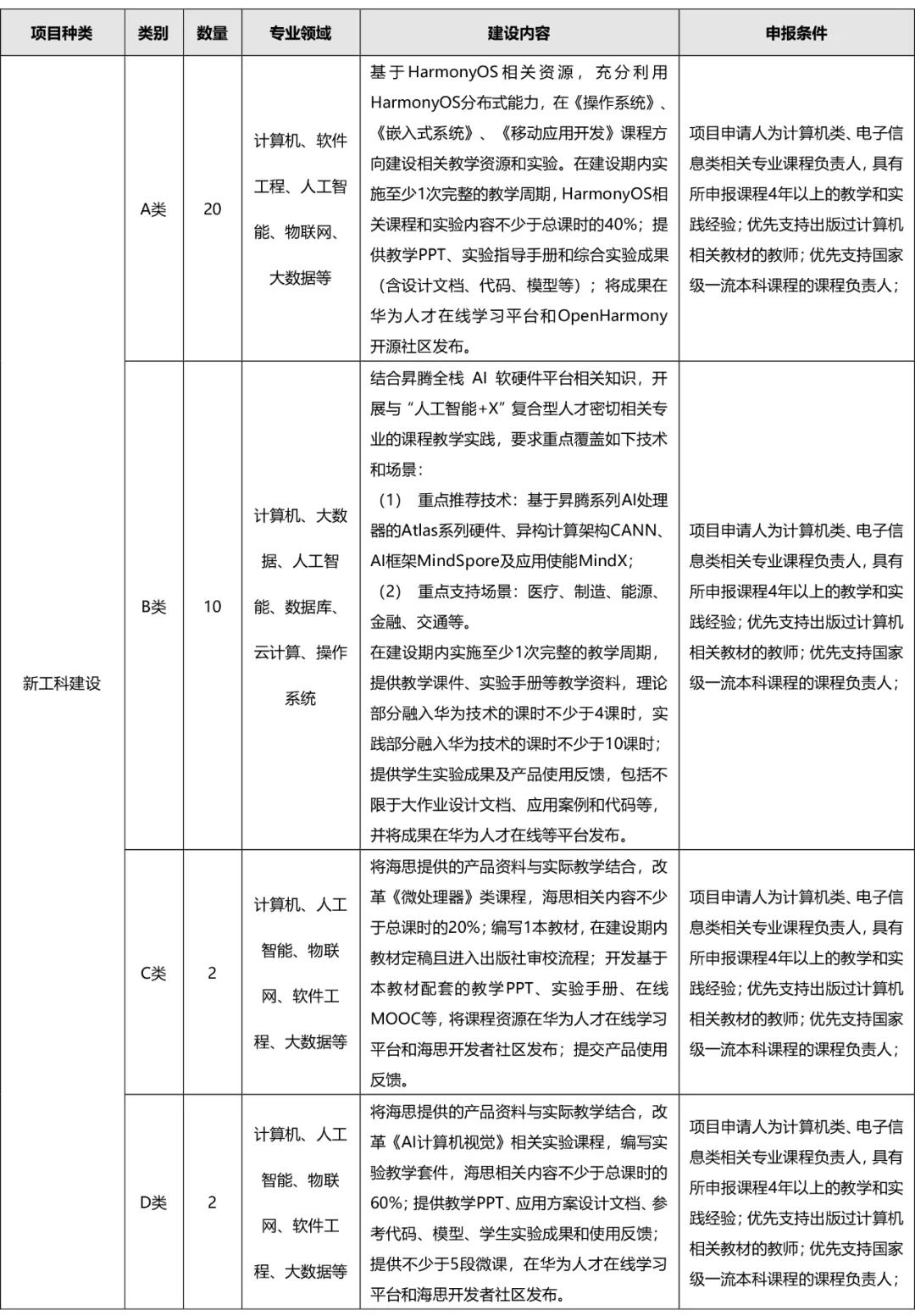 2021年,华为公司拟在AI、嵌入式系统、移动应用开发等方向上支持高校的人才培养和专业综合改革。